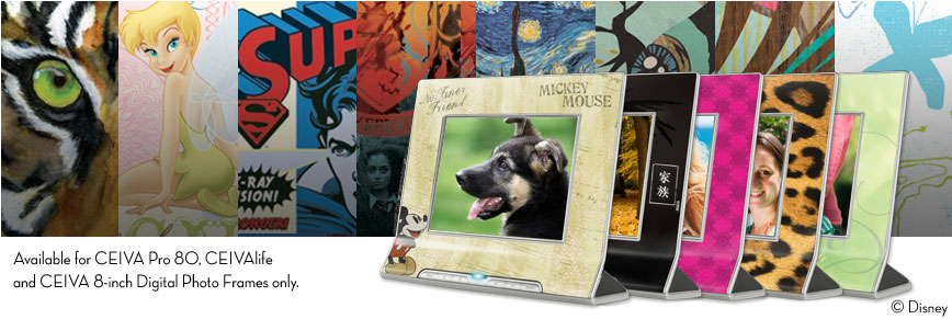 Skins are designed to fit CEIVAwifi, CEIVA Pro 80, CEIVAlife and CEIVA 8" Digital Photo Frames without interfering with navigation or damaging the frame.